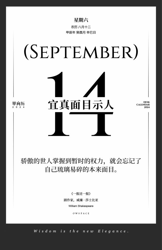 9 月 14 日,宜真面目观人