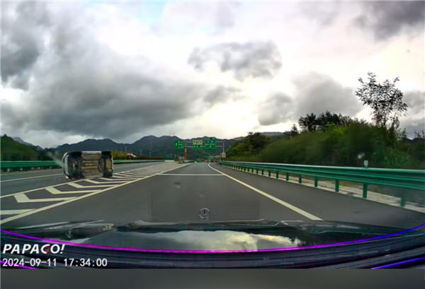 根据前车主的描述,他在变道时已经打了方向灯,但是后车却从左边快车道的实线变道撞上了自己,造成了侧翻。