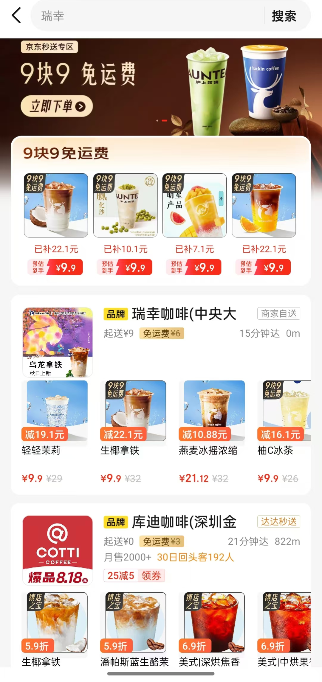 在JD.COM购买咖啡,9元9免费。