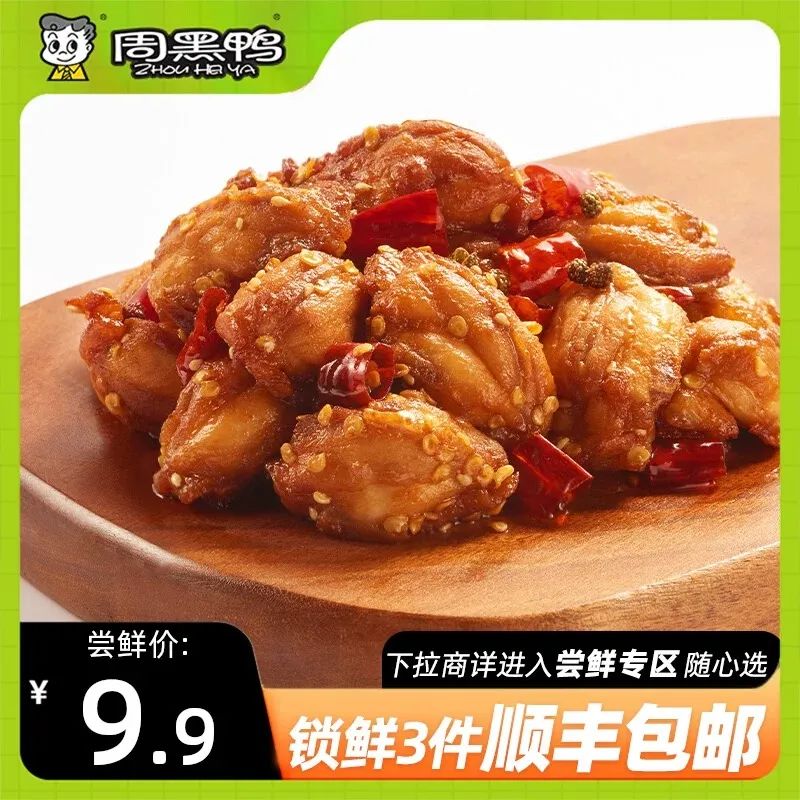 最近周黑鸭上线了 9.9 元货,主推 "解馋超自由"。这个措施是为了应对客户 喜爱高性价比的消费趋势,吸引顾客进入商店,挖掘更多的市场前景。9.9 元的价格包括甜辣鸡腿、干辣子鸡、鸡翅尖、手撕鸡脖或牙签肉等肉制品,以及香干、莲藕、腐竹、毛豆等素制产品。其中,甜辣鸡腿上市。 2 总销量在几个月内有所突破 96 万盒。这类产品的推出,不仅满足了消费者对低价食品的需求,也为周黑鸭带来了新的销售增长点。根据有关数据分析,天猫平台上也有消费者在周黑鸭 9.9 元尝鲜专区留言,当卤菜价格上涨时,品牌推出 “亲民” 这一策略将有助于它通过高性价比的商品吸引更多的客户,增强行业内的品牌竞争力。