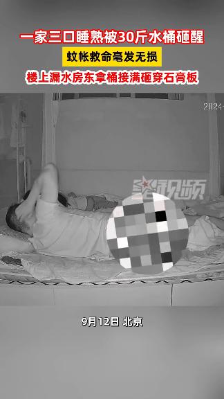 30 斤桶砸下蚊帐救了一家三口:9 月 12 日本,北京。当一个女人的三口之家睡着时,她被从头上掉下来的水桶吵醒了。女人说:幸运的是,有一个蚊帐。30多公斤的水桶和砖头掉了下来,一家人都没有受伤。我自己租了一楼,二楼厨房漏水,一楼有石膏天花板。主人在上面放了一个水桶,水桶里装满了水,然后就掉了下来。