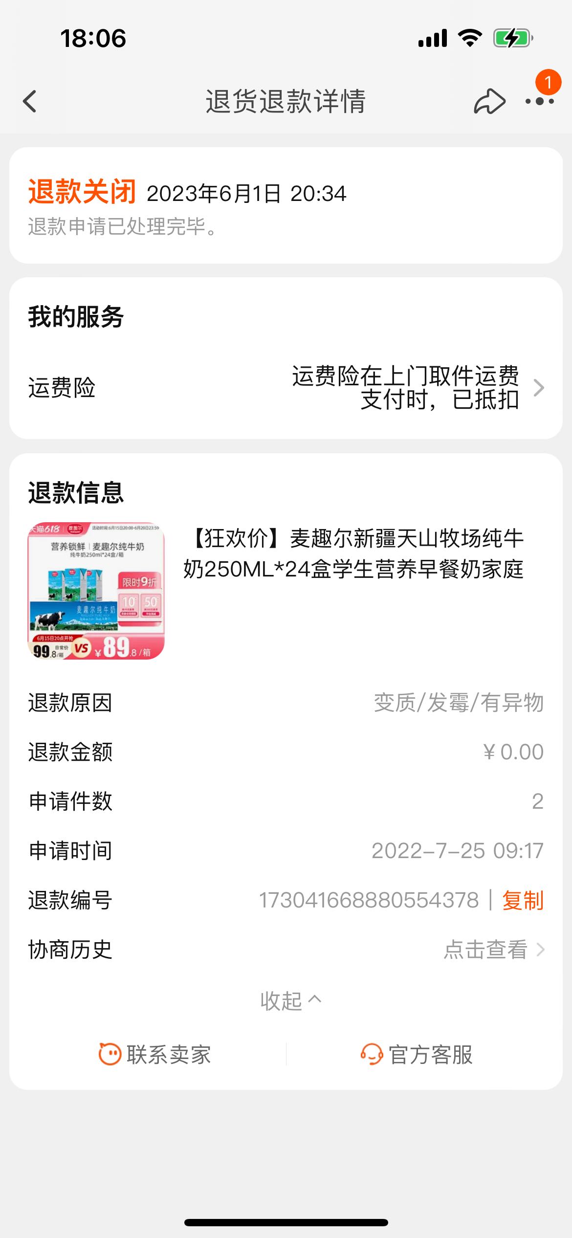 男子网购麦趣尔牛奶退货两年未收到退款,澎湃介入后已处理。