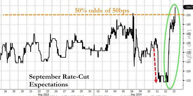 在美联储9月大会前夕,有报道称,50个基点的降息预期将被点燃。
