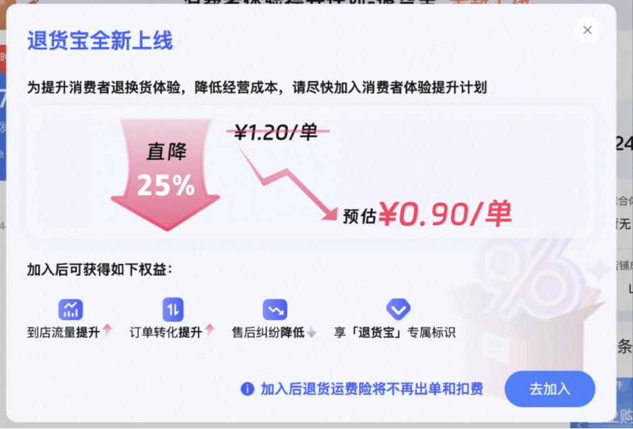 一位灯具类商家分享说,退货宝上线后,他的服务费从4.7元/单下降了25%到3.52元/单。“我们一年开了20多万单,这样可以直接省下30万。”收到退货宝的邀请后,商家算了算账,很快决定加入。“有折扣是好事。”