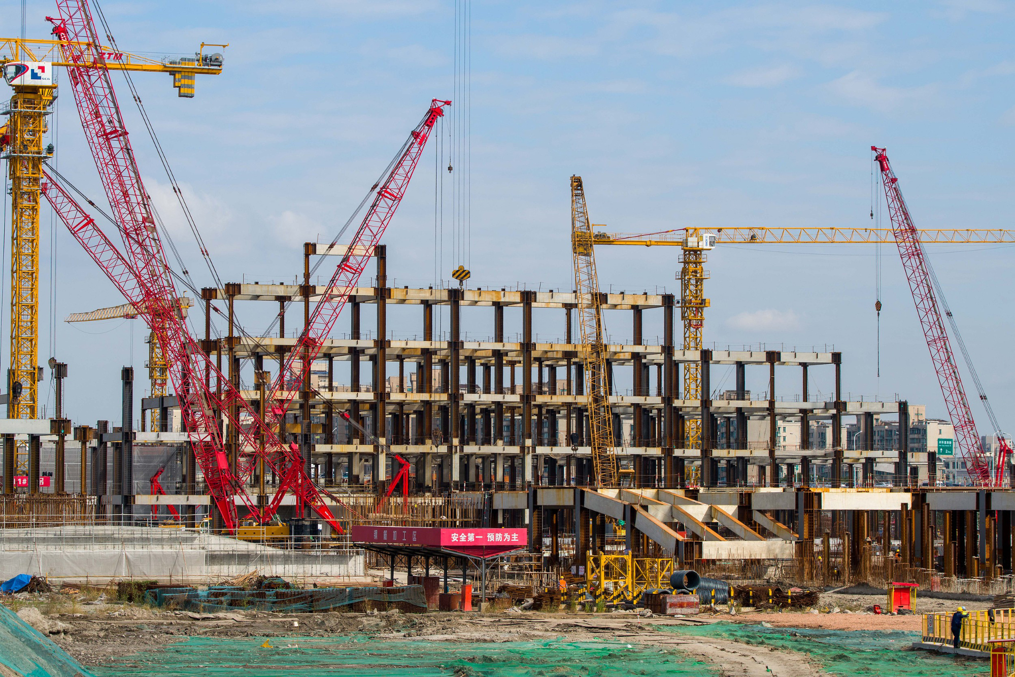 上海、双子山已于2022年12月13日完成表皮结构封顶,山体轮廓清晰。视觉中国 图