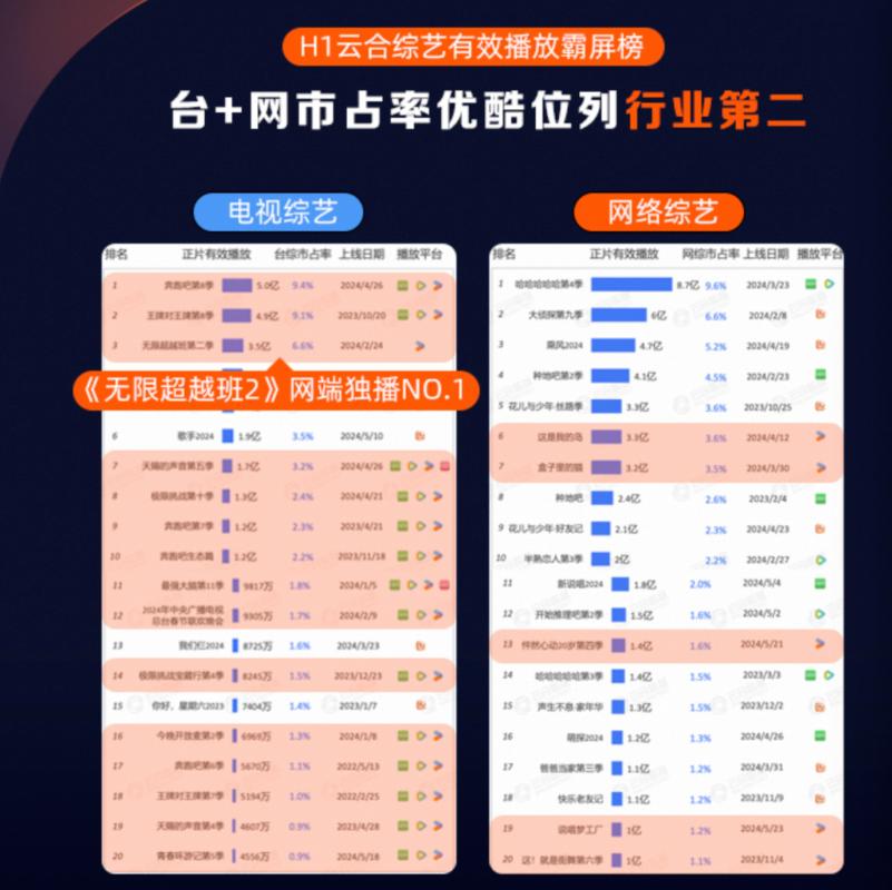 在四大平台的排名中,优酷一直被认为略逊于腾讯视频和爱奇艺——鹅桃,酷在第二梯队“吃瓜子”。鉴于优酷“疯狂”的表现和老对手爱奇艺的“意外失败”,今年酷酷在市场上的存在感和讨论度极高,甚至有人提出,曾经被认为落后的优酷,有机会借助今年的好势头重返第一梯队。