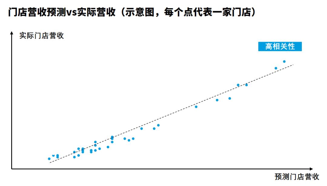 通过这种评估方法,可以有效地预测商店的收入。如果这种方法的预测结果与实际商店的收入呈现出较高的相关性,那么零售商就可以用这种方法批量筛选点位,预测商店的投入产出。