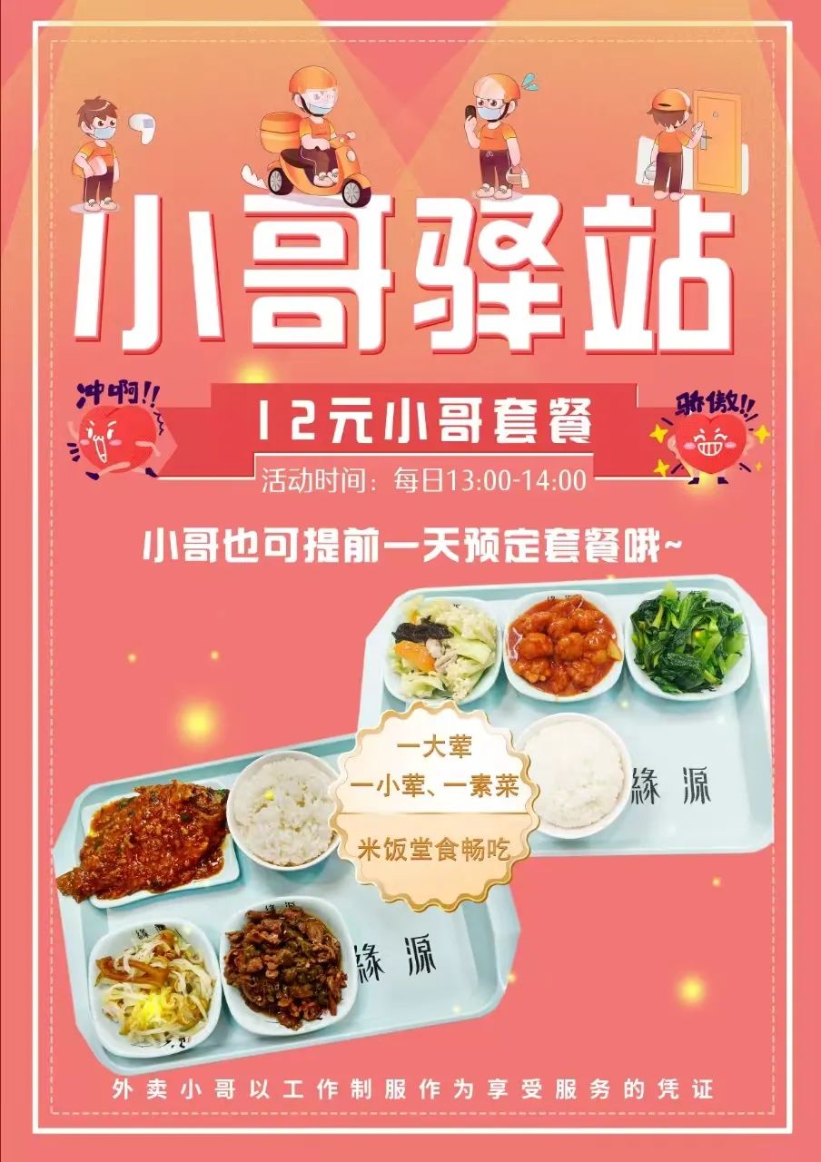 值得一提的是,位于湖南路298号的武康社区食堂最新成为“小哥驿站”。除了上述服务,还专门推出了“小哥套餐”,以实惠的价格提供营养餐,让小哥们在忙碌的时候品尝到家的味道。