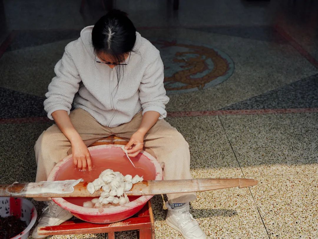 梅玉惠剥蚕蛹,已非常熟练。
