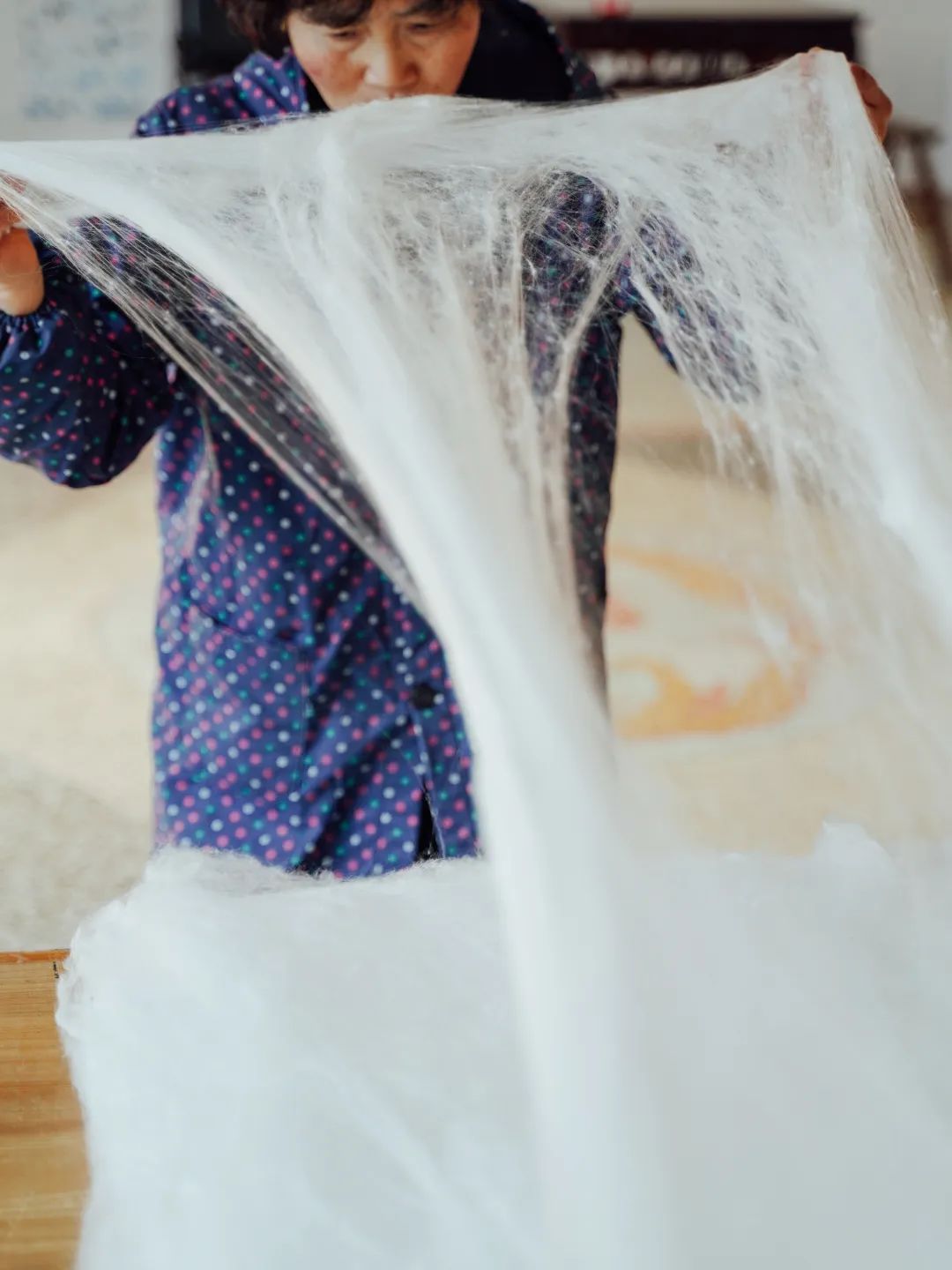 拒绝机械化,全程拿手拉丝绵。