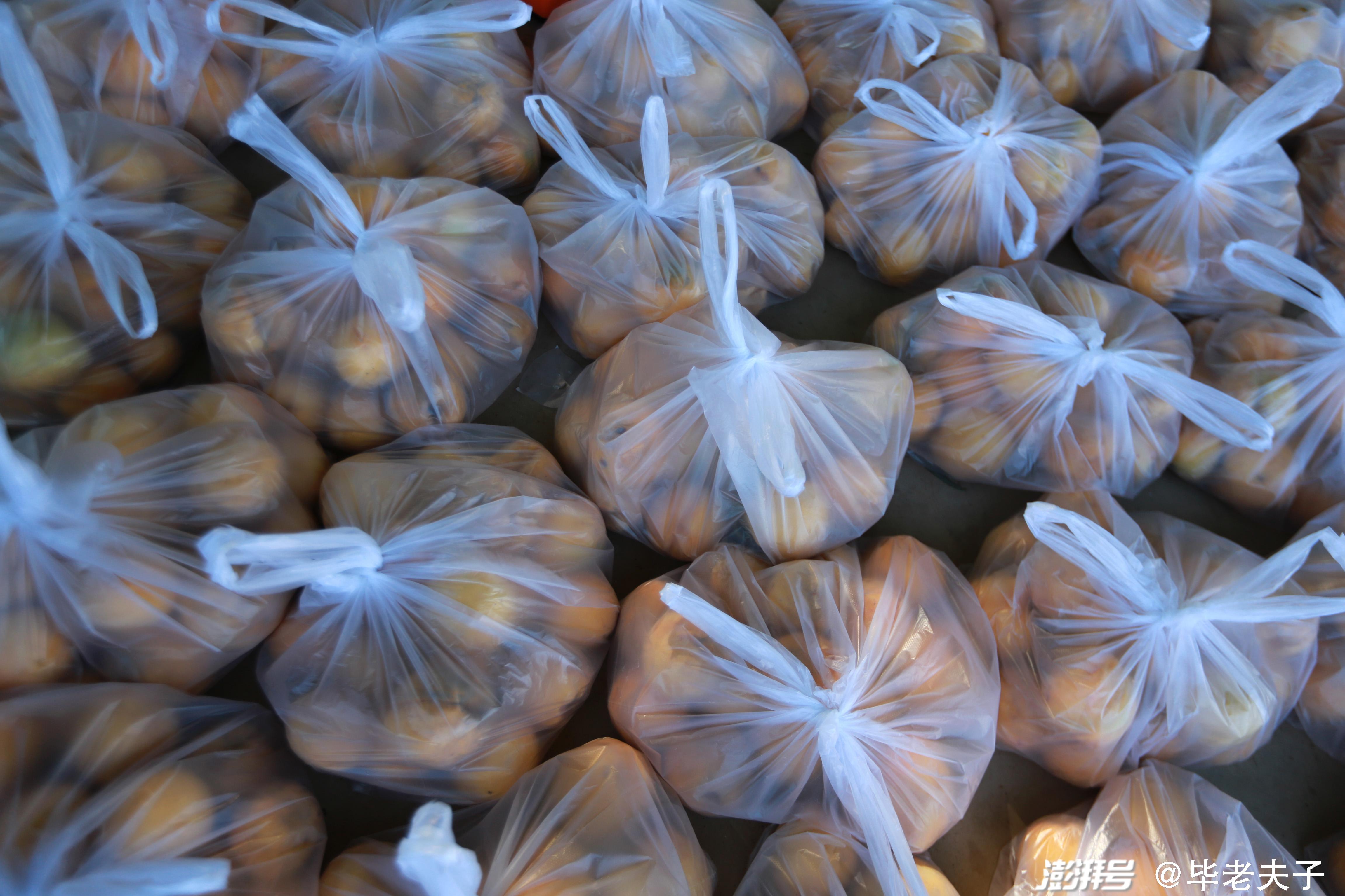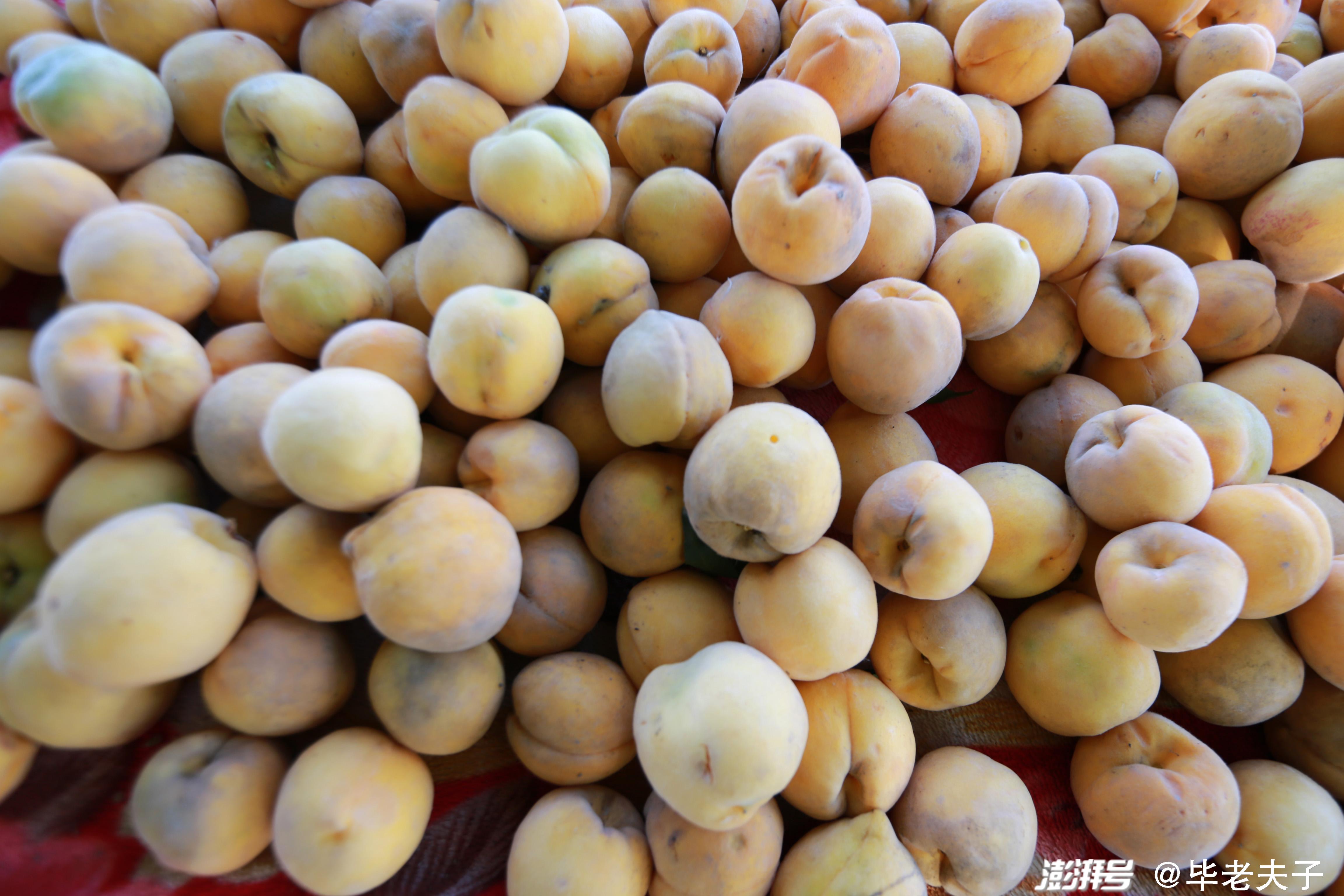 由于近期当地极端天气变化无常,降水较多,个别林果种植者面临着熟果收获和销售困难。图为待销黄桃。