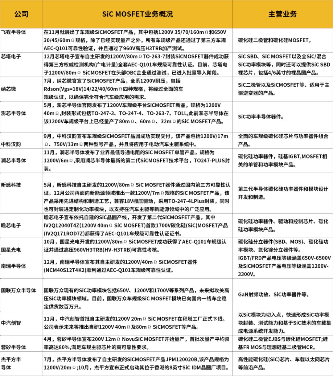 国内厂商在2023年推出的SiC车规 MOSFET产品
