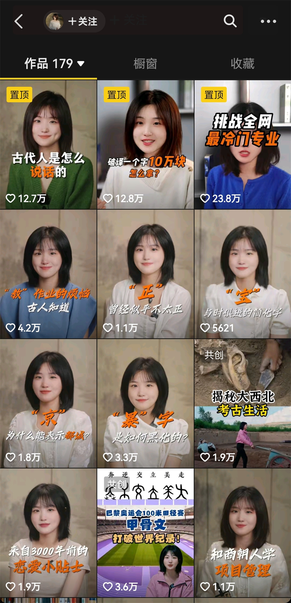 创造者,信息,感兴趣的用户,被推荐系统连接起来。陈年福是浙江师范大学人文学院研究甲骨文方向的导师,每年只有一两个研究生。李右溪是陈年福的学生。除了偏僻的学科,她还在Tiktok上普及甲骨文,制作甲骨文相关视频,从字体、历史、文物等角度分享自己喜欢的专业。另一个经历类似于周思益。她在Tiktok运营@弦论世界,向网友讲述了深厚的弦论和宇宙学。周思益声称在Tiktok开了一个“弦论幼儿园”。