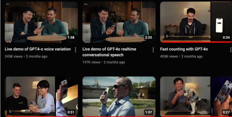 今年5月14日,OpenAI发布了GPT-4o和端到端实时音视频对话模式,现场演示了AI对话像人类一样流畅。它可以感受到你的呼吸节奏,用比以前更丰富的语气即时回复,甚至随时打断AI,效果惊人。