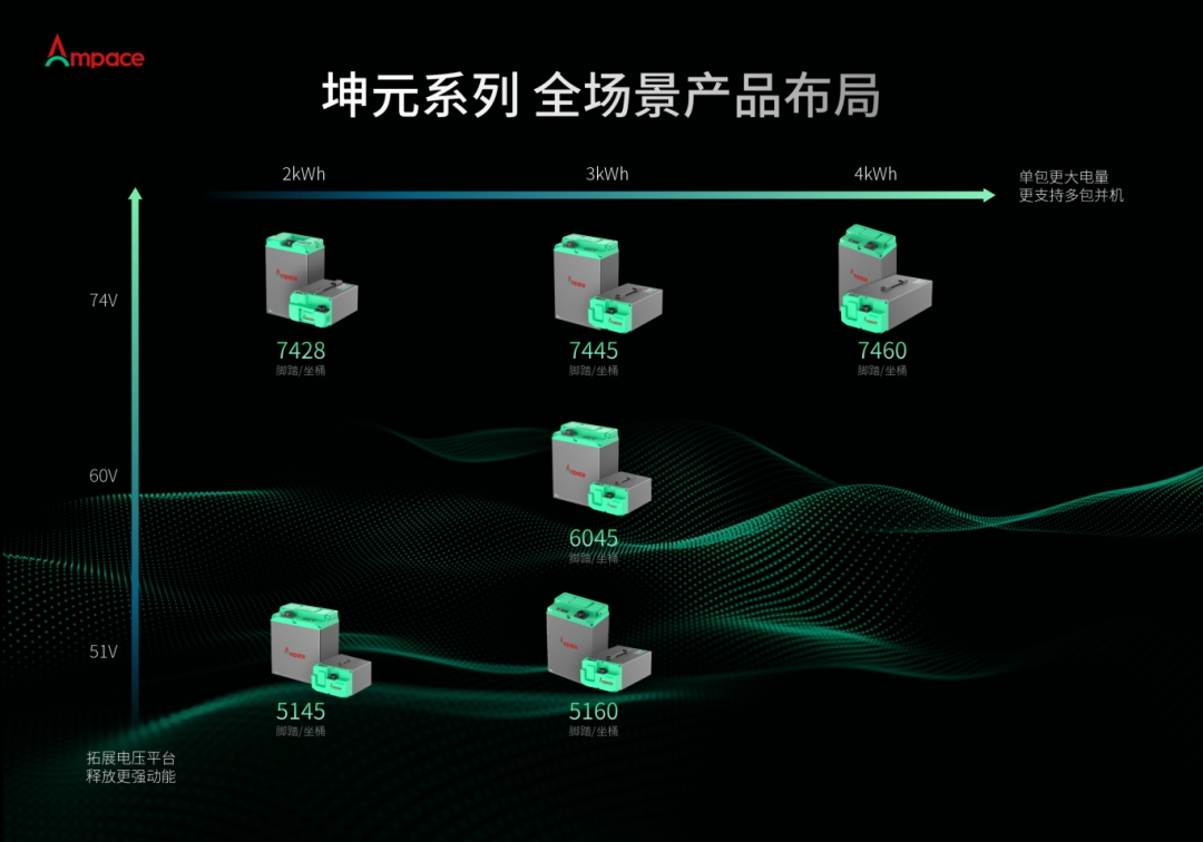 此外,坤元通过“标准截面”电池尺寸和接口协议的适应设计,构建了从两度电(2kWh)到四度电(4kWh)的广泛容量范围,一款BMS可以适应51V、60V、不同电压平台的74V。