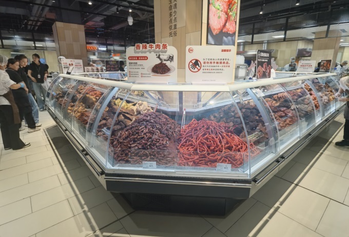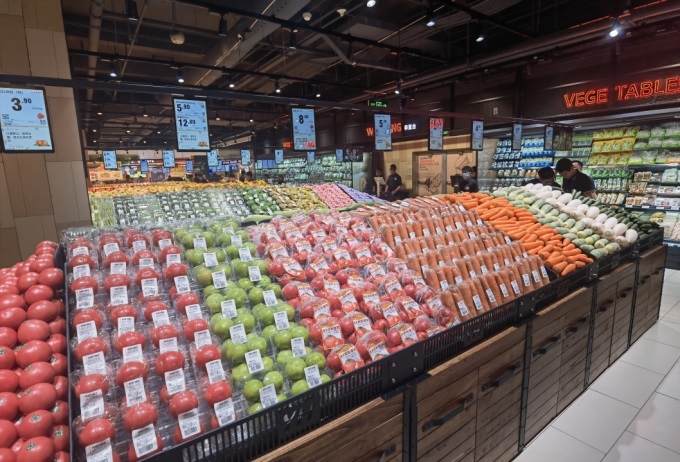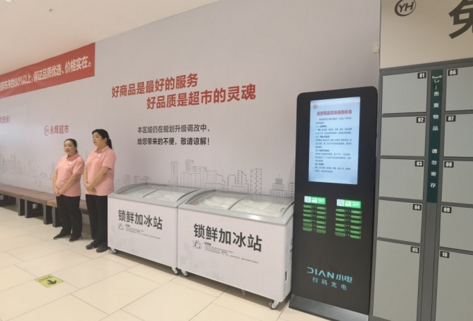 在设备更新方面,为了保证商品质量,增强冷链设备,对原设备进行了全方位的维护和更新迭代。根据布局调整,新增了食品、水果、蔬菜、新鲜区域的货架等设备设施,硬件设施整体更新占80%。