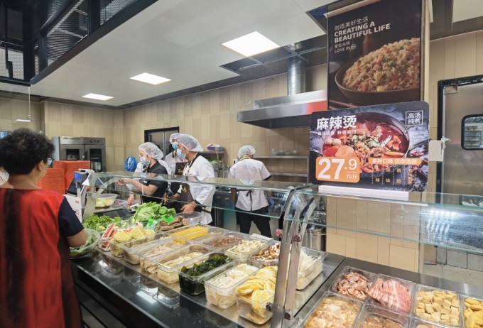 除了原有的卤菜、面点、炸菜外,鲜食区还加入了中式快餐、串香等餐饮摊位。