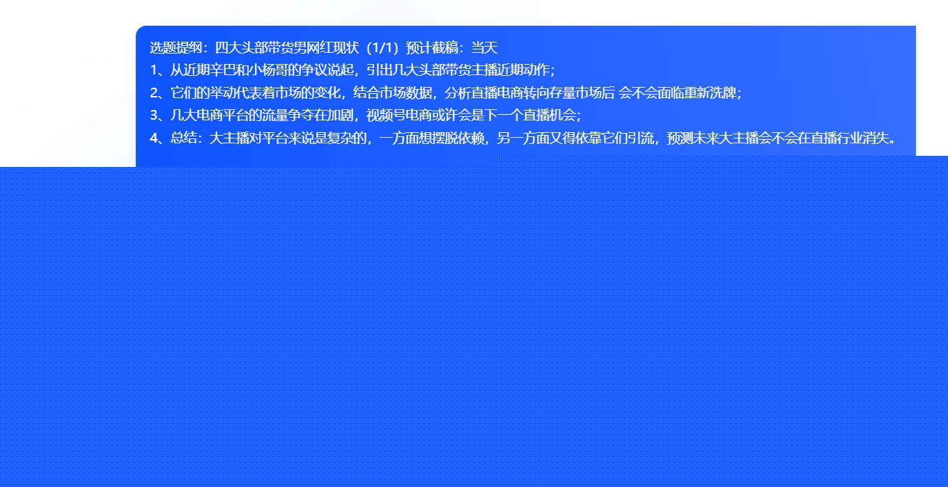 雷科技经常体验各种AI生成工具,输入自己想写的内容或主题。AI会自动生成活动计划、产品需求评议会、工作日报等相应的内容和风格。小雷可以根据自己的实际情况进行更改和优化。当然,AI也可以根据主题和背景写一个大纲,或者写一篇新闻稿和文章。