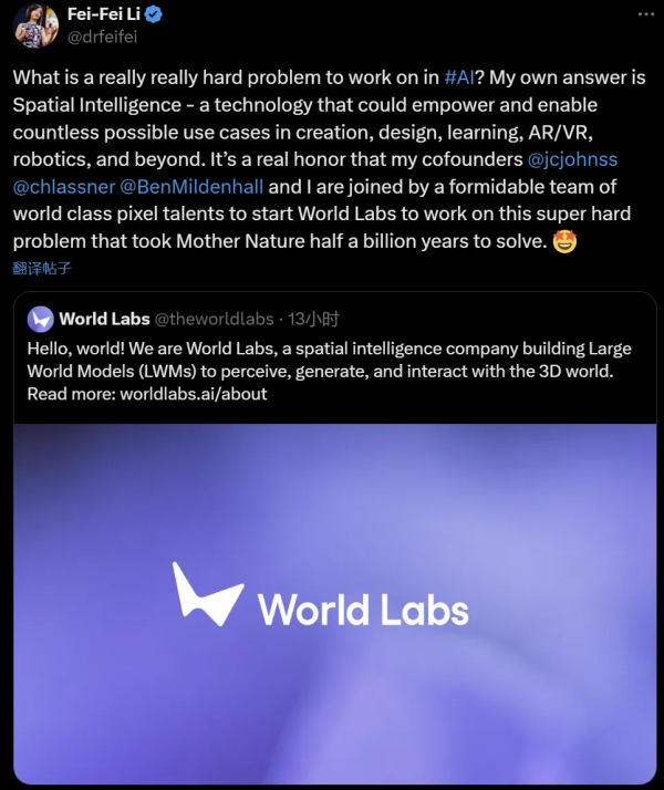 在社交平台X上,李飞飞正式宣布。