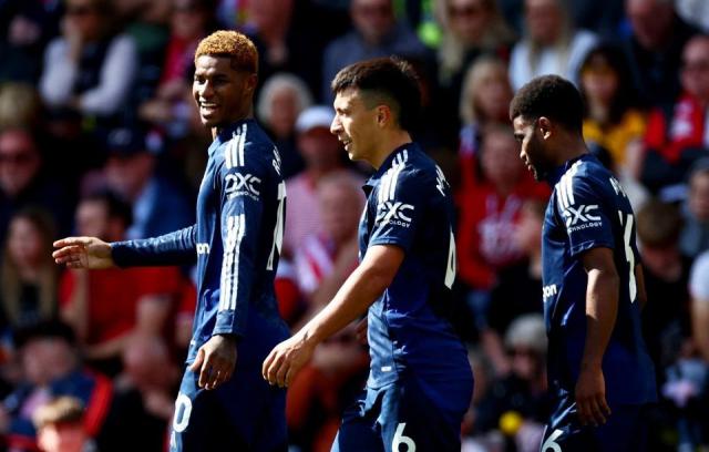 在上半场结束之前,埃里克森给出了右路角球,阿马德进入了左路。 · 迪亚洛的脚底,他回到拉什福德,后者弧线球进入远角,攻入本赛季的第一球,也是个人。 3 从月份开始的第一个进球。滕哈格还预测拉师傅将继续进球:「任何一个前峰都想进球,一旦有了第一个进球,就会有更多的进球。它就像前峰的番茄酱瓶,一打开就越来越多。」