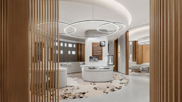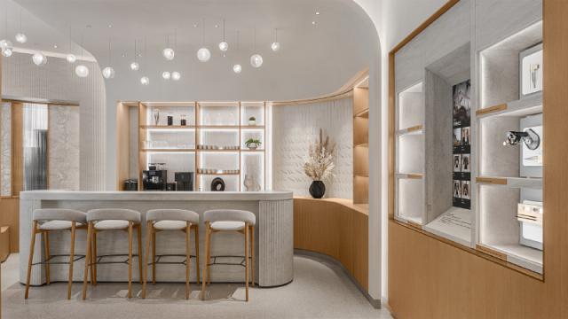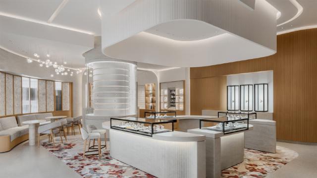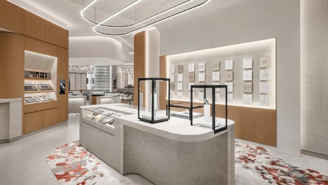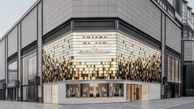 此外,积家刚刚在王府中环开了一家全新的旗舰店,商店的立面墙铺着玻璃瓦,其灵感来自瑞士汝山谷。(Vall é e de Joux)在传统建筑中,用来保护建筑,抵御寒冷。 tavaillon 木瓦外墙,但是在二楼的店内空间里,积家也把汝山谷的概念融入其中,而且自然地把不同的区域分开。
