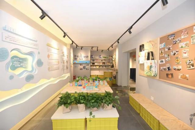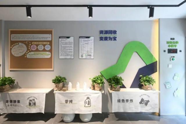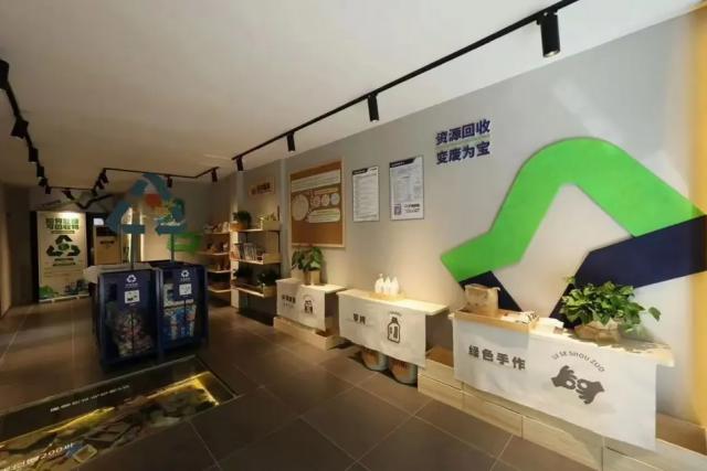 走进黄家路这个便民回收服务点,我们可以看到,以“尚沪回收”为核心,巧妙地融入了“低碳车间”的概念,整体外观以清新的蓝绿线条为主,突出了自然与环保的和谐共生。内部使用了大量的再生建材和产品,美观实用,展现了循环经济的独特魅力。