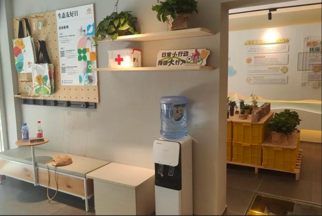 此外,小东门街区在绿色实践中取得的成果也在服务点生动展现。该地区还专门设立了“爱心站”,为环卫工人、快递员等户外劳动者提供一系列温馨的服务,包括饮用水乘凉、祛寒避雨、手机充电、紧急用药等。户外劳动者可以在这里感受到社区的温暖和关怀。