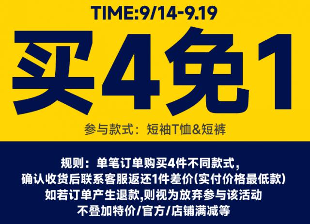 当然,除了上面介绍的款式,还有很多受欢迎的短袖参加活动,只要你选择参加活动的款式。 4 一件不一样的款式,可以享受。「买 4 免 1」优惠,详细活动规则见下图。享受更多活动顺丰快递包邮福利,当天下单,最快第二天就能收到!