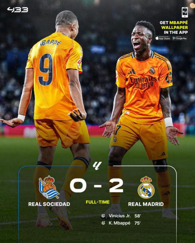 西甲第 5 轮子,皇马客场 2-0 击败皇家社会,取得两连胜。居莱尔和威尼修斯先后创造了一些东西,威尼修斯和姆巴佩点击建功,皇家社会。 3 次中框。