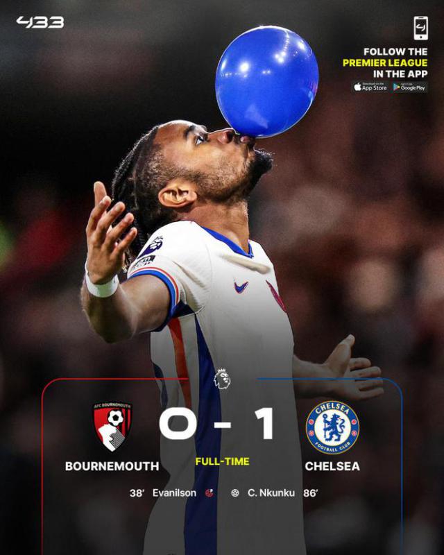 切尔西客场 1-0 杀死伯恩茅斯,桑切斯送点球,但是把埃万尼尔森的点球扑出来,第一个。 86 一分钟,桑乔首秀助攻,恩昆库替补建功。