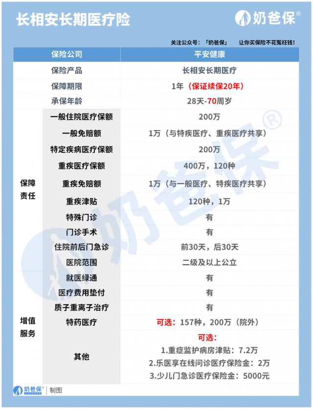 长相安全长相安全长期医疗保险这是一种可以续保的保险 20 年度医疗保险,保险门槛也非常宽松。