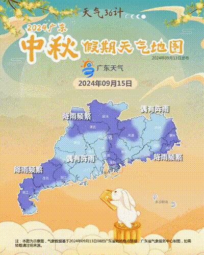 首先来看看广东中秋节假期这三天天气的最新预报。@广东天气 预估,15 太阳,广东多雷雨天气,局部雨势强劲,伴随着 7~9 16-17级雷雨大风; 日本,广东以阴天为主,中南部市县分散(雷)阵雨,中北部部分市县分散。 35~36 高温天气℃。