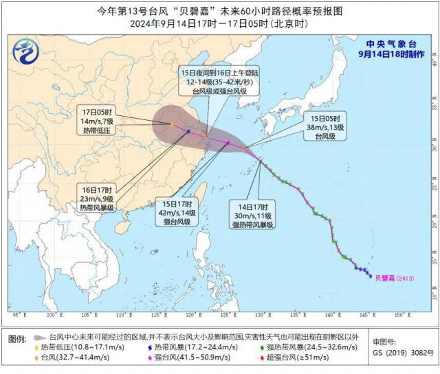 第 13 “贝碧嘉”号台风直奔江浙沪,估计今天将以台风级或强台风级(9 月 15 晚上到明天(9) 月 16 日)早晨登陆浙江台州至江苏启东沿海。