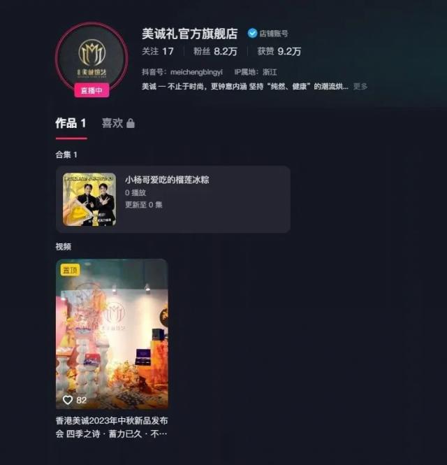 根据第三方数据平台蝉妈妈的数据,“美诚礼官方旗舰店”近 30 天共发布 211 视频作品。然而,记者注意到,美诚礼官方旗舰店只有抖音。 1 一段视频,一个名字叫“小杨哥爱吃的榴莲冰粽”,账号视频评论区和直播评论区都已经关闭。