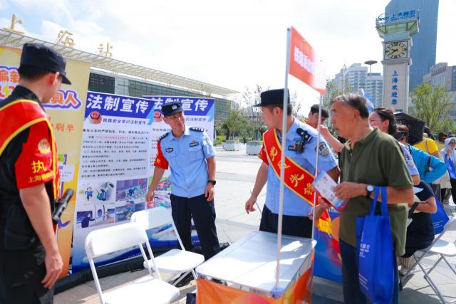 活动首次在铁路上海站南广场新时代文明实践站周围拉开帷幕。现场,辖区内多个部门和单位携手合作,对居民日常生活中高频出现的风险点进行了生动实用的防诈知识宣传讲解,重点介绍了金融防诈、银储安全、社区防诈、铁路票务防诈等。