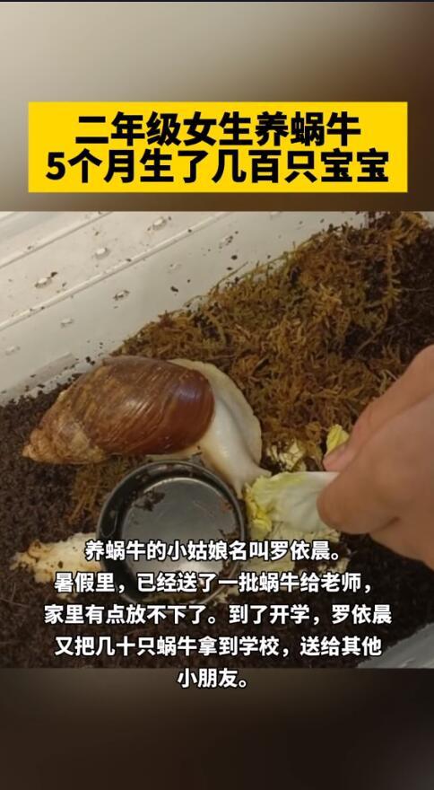二年级女生养蜗牛,5个月生380只宝宝。 妈妈:送不完 根本送不完