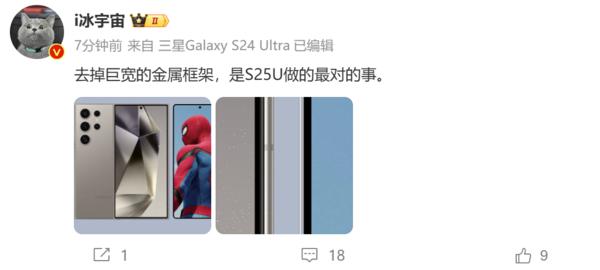三星S25博主 去掉金属框架的Ultra非常正确 屏幕占比大幅提升
