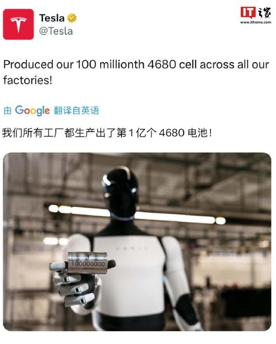 IT 世家 9 月 15 今天,特斯拉又一次迎来了里程碑时刻,第一个时刻, 1 亿颗 4680 电池线下。但是三个月前,特斯拉刚刚宣布第一次。 5000 万颗 4680 电池下线。