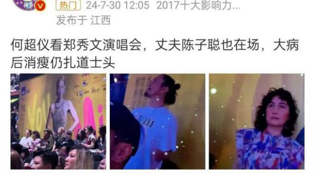 早些时候,何超仪去看郑秀文演唱会,丈夫陈子聪也陪着。
