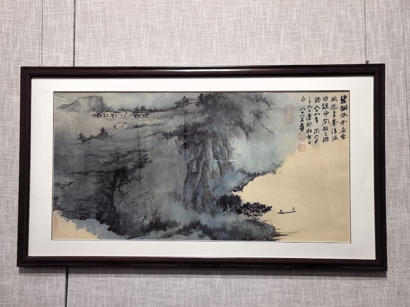展览中张大千的另一部作品是《登高秋思》。“登高秋思”的主题与中国古诗词有关。杜甫的《登高》是典型的“登高秋思”杰作。