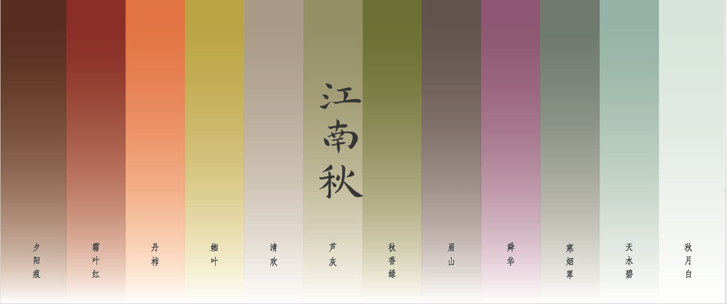 从这些诗意的中国色彩中,我感受到了江南的树枝、树叶、夕阳痕迹。