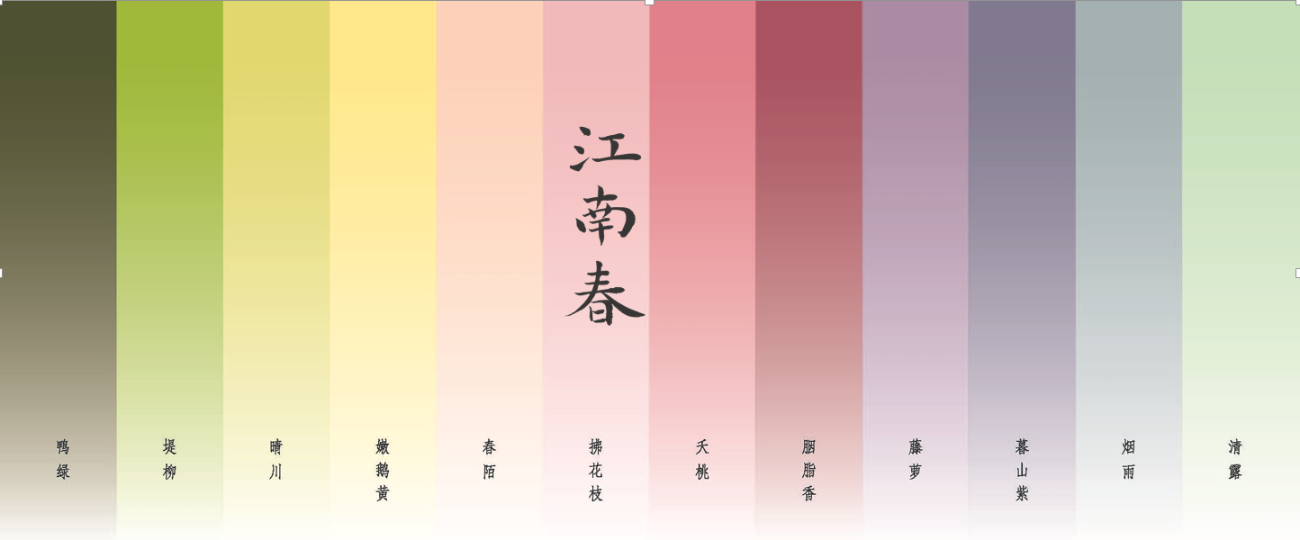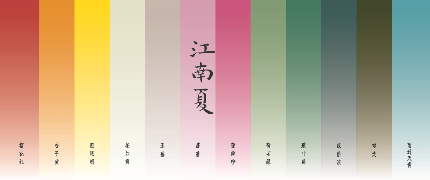 “四季江南”系列秉承东方色彩文化的传承和弘扬,遵循传统的“五色观”,以色彩为主媒介,从古诗中寻找描绘色彩的形象词,以色彩命名色彩,让每一位用户都能在纸上轻轻触摸几笔,感受江南四季的运作。