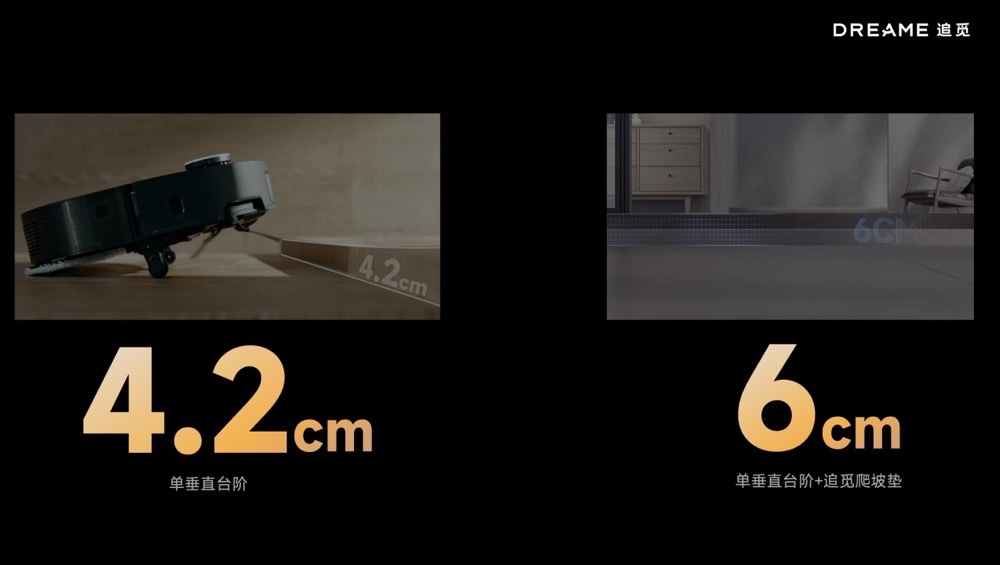 在常规环境下,追寻X50系列可以应对单垂直台阶,最高越障高度为4.2。cm;结合其独特的上坡垫使用,可以达到最高越障高度6cm。