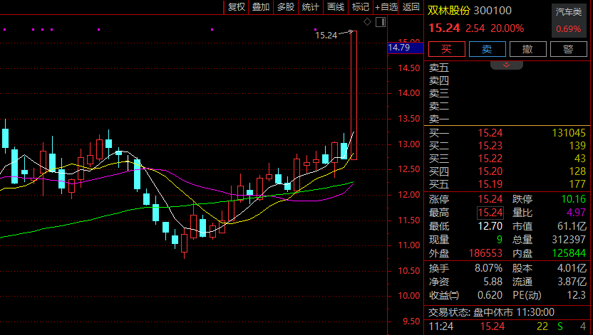 早上爆发了人形机器人概念,板块指数盘中成交量一度上涨3%以上,创近一个月新高。双林股份涨停20%,近四年股价创历史新高。自2月份低点以来,累计上涨近200%。;亿嘉和、骏创科技等也有很强的涨停或超过10%。