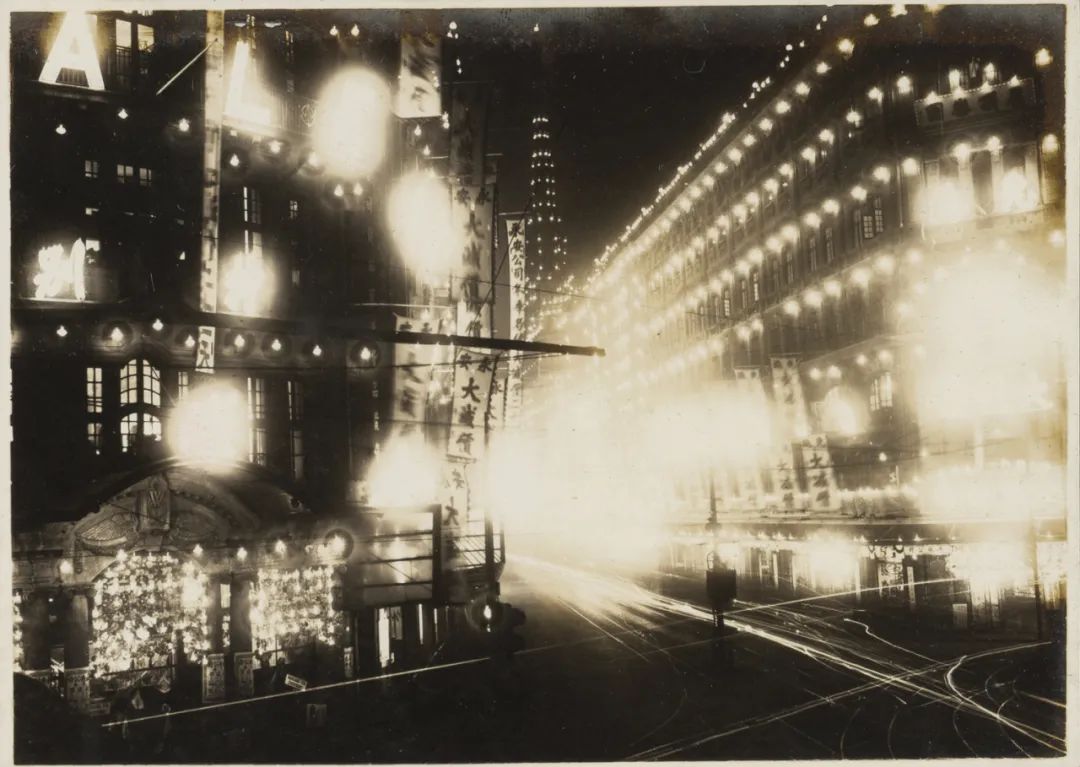 1882年7月26日,中国第一盏电灯在上海点亮。早在1865年,南京路就已经使用了上海的第一批煤气路灯。覆盖街道的照明技术一方面是新能源利用的代表,另一方面是西方城市的剪影。在灯光下,明亮而繁华的“不夜城”成为了人们心目中的未来形象。