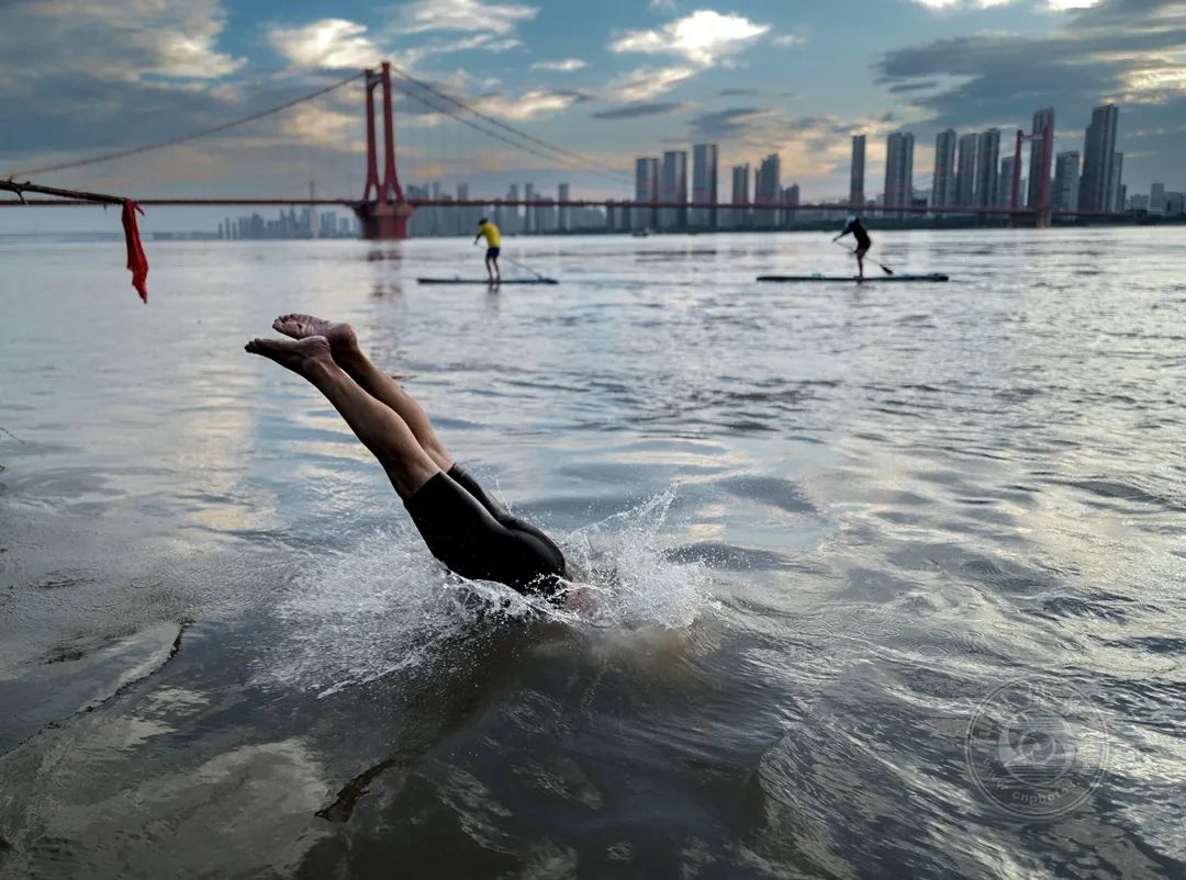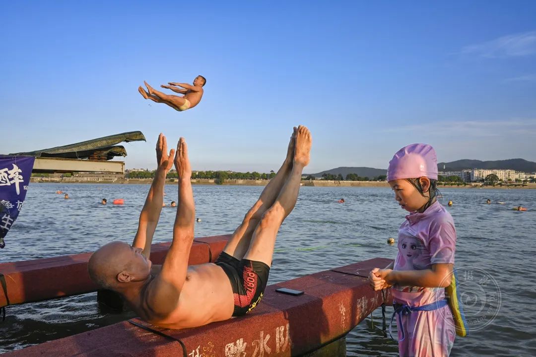 2024年7月18日,武汉。武汉这个炎热的地方迎来了炎热的夏天,气温高达40度左右。许多市民在长江流域以各种方式乘凉和防暑降温。