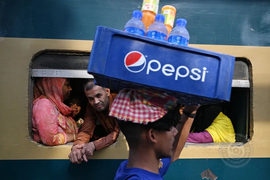 2024年进入孟加拉,4月10日在达卡火车站,看到一个小哥哥沿着火车卖百事可乐,我抓拍了这一刻。