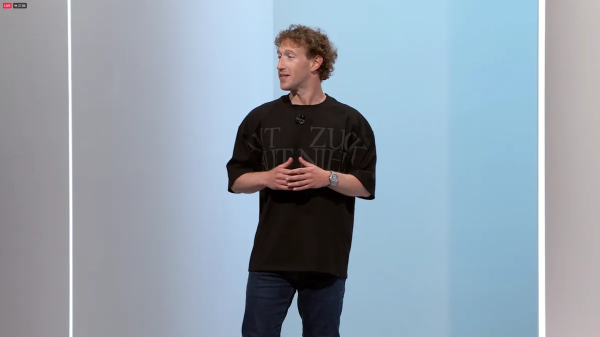 在会议现场,马可·扎克伯格穿着黑色长T袖,上面写着“扎克伯格可能什么都没有。”