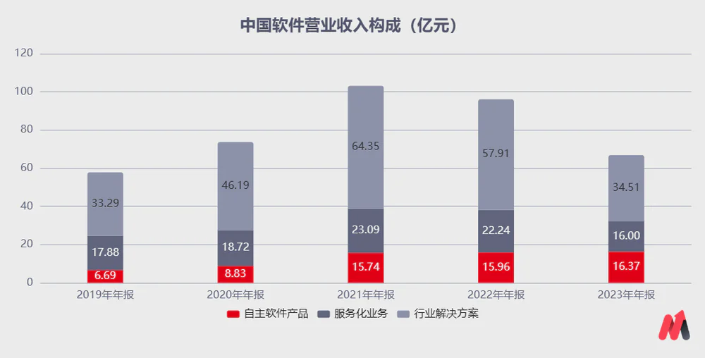 软体服务业务信息系统运维、云服务业务,主要是税务领域,原本是公司第二大业务,近几年受市场竞争和信创招标影响,占公司总收入,2023年实现营业收入16.00亿元,同比下降28.05%,毛利率55.44%,同比下降3.07%。