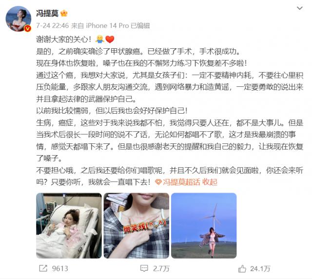 作为一名网络歌手,唱歌是冯提莫的主要工作。但是手术后,她在很长一段时间都不能说话。。